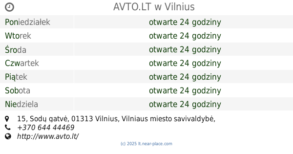 | Niedziela | otwarte 24 godziny | |||||