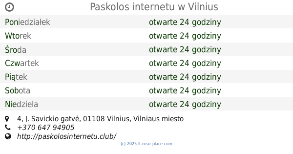 | Wtorek | otwarte 24 godziny | |||||